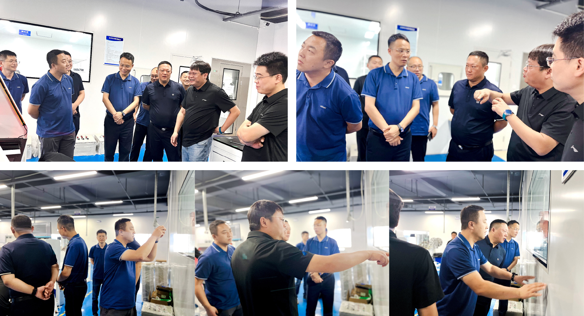 中电四领导一行在蓝海智控董事长卢新的陪同下,参观了公司的生产车间、仪器测试中心、产品研发中心等场所,卢总介绍了我司自研产品技术路线、设计理念、实施方法、产品特点、产品优势以及市场应用情况。在参观过程中,双方对智能控制及智能装备领域的发展趋势、技术创新等方面进行了深入交流。